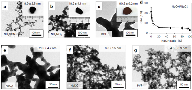综上,系统讲述了盐介导的NMAs制备方法与步骤,实现了在室温下快速制备组成、特征尺寸、元素分布可调的多种NMAs,为这一新兴材料的基础与应用研究奠定了坚实基础。