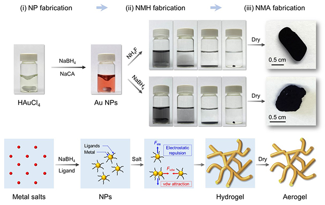 图1 贵金属气凝胶合成过程和基本机理。