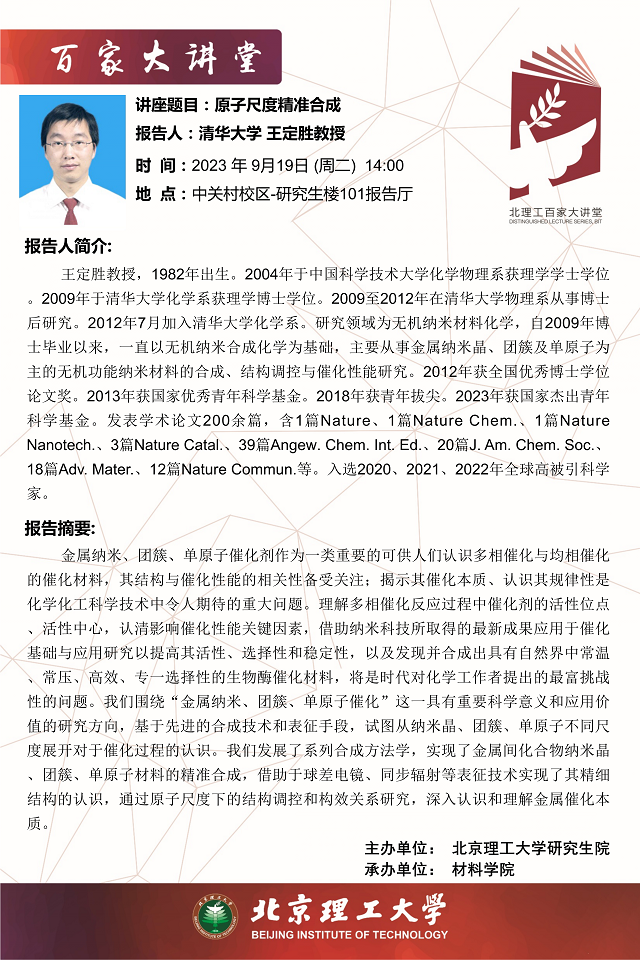【百家大讲堂】清华大学王定胜老师报告预告