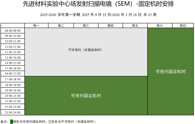 每周最少固定2小时。 本次开放:2025-2026学年第一学期的2025年8月25日至2026年1月18日)。 |