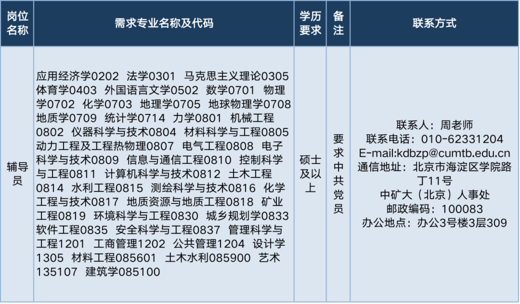 中国矿业大学(北京)2024年度招聘工作