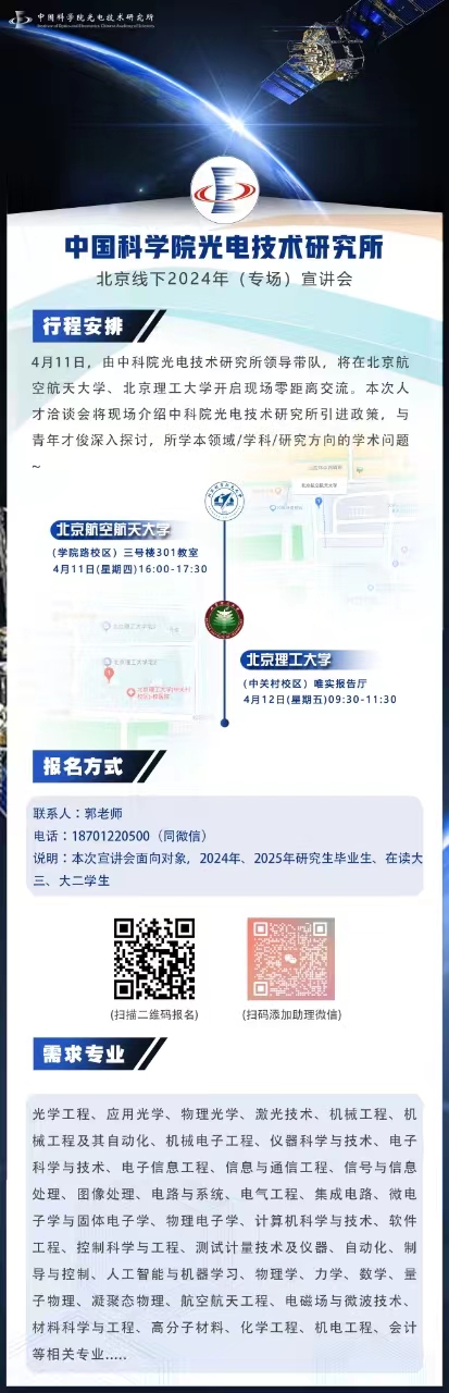 硕博人才 | 中国科学院光电技术研究所在京举办2024年硕博人才(专场)洽谈会