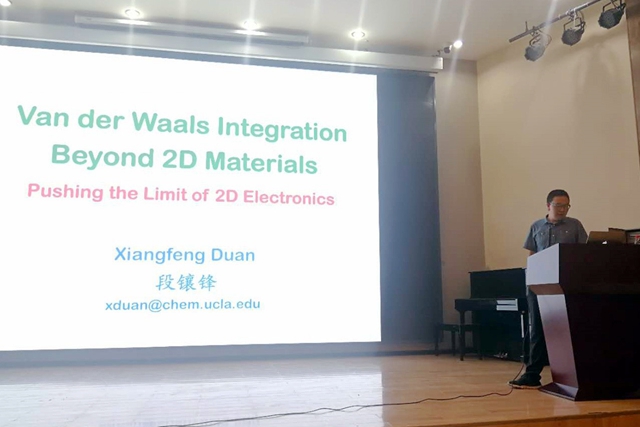段镶锋教授做了题为“Van der Waals Integration beyond 2D Materials-Pushing the Limit of 2D Electronics”的学术报告。提出了利用不同二维材料通过van der Waals分子间作用力构筑新型高效微纳器件的理念,展示了近两年发表于Nature和Science等期刊的研究成果。报告深入浅出,并与在场师生进行了热烈的讨论和交流。随后段教授也为必威西汉姆联的材料化学专业全英文教学、研究生国际化培养进行了指导。对提升我校新材料前沿研究国际交流、国际化人才培养等起到了很大的推动作用。