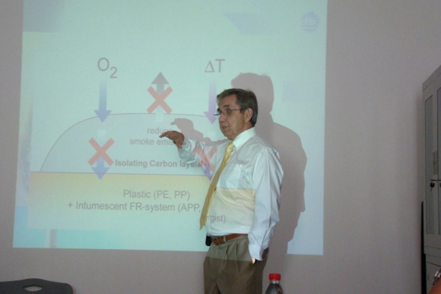 2009年4月30日美国原阻燃学会主席,著名阻燃科学家Dr. Peter a Whitman在必威西汉姆联就无卤阻燃技术作了精彩的学术报告,报告后大家就阻燃材料阻燃技术国际发展前沿和技术问题进行了充分而广泛的讨论,尤其对无卤阻燃今后的发展和问题。 我院研究生和中国工商大学“北京市阻燃实验室”的老师和研究生一同听取了学术报告会。