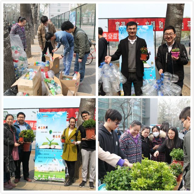 “旧要新鲜,绿满校园”环保公益活动,收集对环境的一份尊重,换得一抹赏心悦目的绿色,用废旧瓶子换取心仪盆栽,让环保从你我做起,为共同建设绿色校园、美好校园贡献自己的一份力量。
