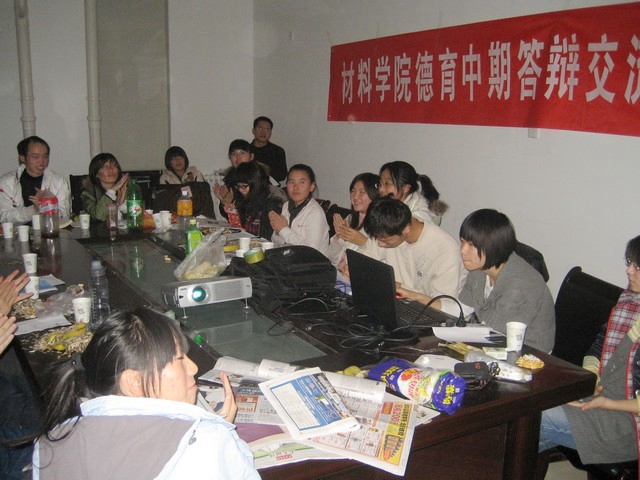答辩以茶话会的形式进行,同学们以口述、ppt等方式做了介绍,并借此途径总结了大学两年以来的收获和经验教训。同学们表示要从这些书籍和电影中汲取力量,吸收其精华,并让其在自己今后的生活中起到积极的指导作用。答辩中同学们踊跃发言,就提出的一些观点展开了热烈的讨论。原订两小时的答辩持续了近三个半小时。