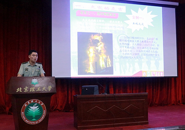 本次培训特别邀请了双榆树消防中队的警官,从火灾的危害、火灾逃生技能、《消防法》、和消防安全能力建设四个方面给同学们做了专业的培训。警官以国内多起重大火灾事件以及北京市部分高校的消防事故为案例,强调了火灾不仅会造成财产损失,更严重危害人类生命安全,必须引起同学们足够的重视。他对火灾的主要成因、灭火器材的使用、正确的报警方法和逃生技能做了详细说明,提升了同学们应对消防事故的应急能力。同时,他建议学校持续推进“检查和消除火灾隐患能力、扑救初期火灾能力、组织引导人员疏散逃生能力和消防安全宣传教育能力”的“四个能力”建设,希望同学们能够增强消防安全意识,从自身做起,防患于未然。