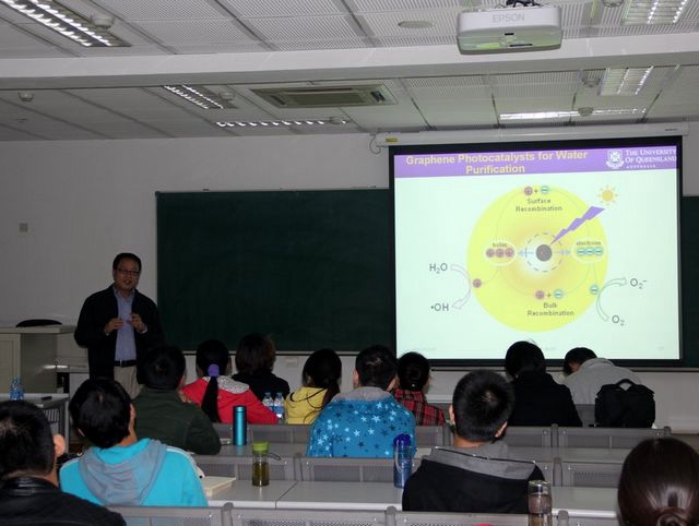 赵修松教授(Prof. X. S. George Zhao)是澳大利亚昆士兰大学化工系终身教授,澳大利亚国家委员会杰出青年基金获得者,赵教授的主要研究方向包括纳米材料在能源、环境、水技术及生物等领域的应用,取得了一系列具有重要影响和应用价值的创新成果;特别是近几年在超级电容器、可见光催化剂用于饮用水净化和杀菌、三维光子晶体制备及其器件组装、介-微孔分子筛合成及催化吸附剂开发等方面进行了大量创新性工作,受到国际同行的高度关注和认可,与必威西汉姆联材料物理与化学系多个课题组有共同的研究领域和兴趣。10月10日下午,在必威西汉姆联5楼报告厅, 赵修松教授做了题为“Advanced Porous Materials and Applications”的精彩前沿讲座,介绍了他本人课题组的最新研究成果,报告深入浅出,PPT制作生动形象,大家争相提问,现场气氛热烈,讲座在大家的于犹未尽中结束。