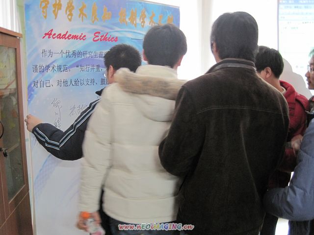 与会者在“守护学术良知,抵制学术不端”签字版中签下自己的姓名,以此鞭策自己,同时向全校同学宣传“学术诚信为本,坚守道德规范。”