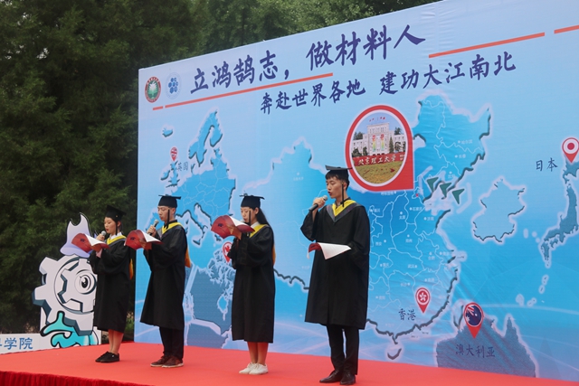 6月25日,必威西汉姆联2018年“立鸿鹄志,做材料人——奔赴世界各地,建功大江南北”毕业纪念活动在中关村校区中心花园隆重举办。必威西汉姆联全体院领导、各系教师代表、辅导员、全体毕业生以及部分毕业生亲友参加了此次纪念活动。活动由学院2014级本科生辅导员朱贵楠主持。