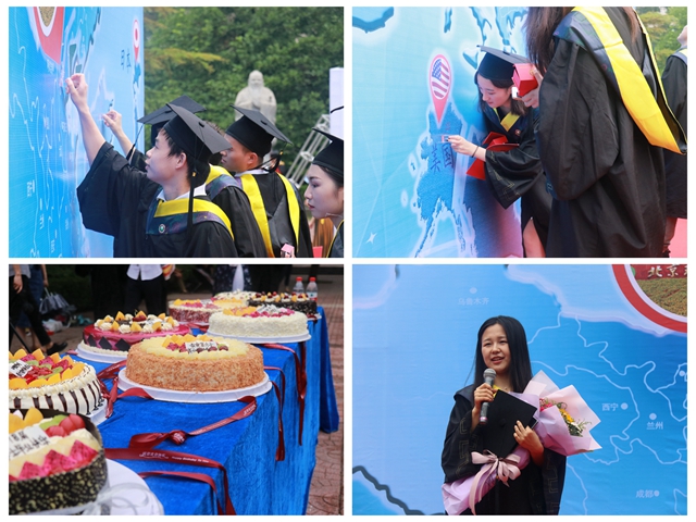 活动当天,学院为所有毕业生准备了毕业纪念蛋糕,作为毕业生在校期间最后一次凝心聚力的团建活动。在场师生共同欢庆毕业快乐,同时也为当天过生日的本科毕业生张慧芬同学齐唱生日歌,场面温馨感人。
