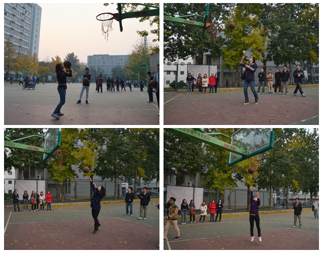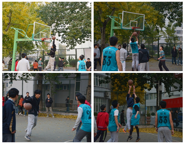 2013年11月8日下午,在学校东南篮球场,09311101团支部与11级硕1团支部进行了一场篮球友谊赛,比赛分为上下半场,每个半场20分钟,中场休息时还进行了趣味投篮比赛。