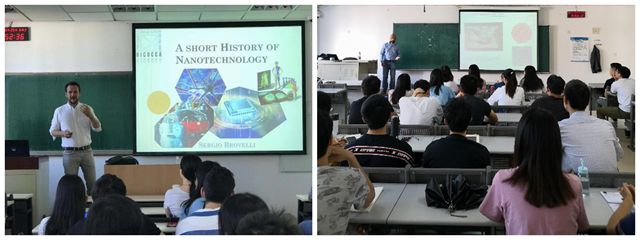 为了推进材化系研究生、本科生的全英文教学,在来访期间,Sergio教授和Iwan教授根据学生的知识背景,结合自身教学、科研经历,为材化系的研究生和本科生分别于24号和25号分别上了一堂全英文课程。分别讲了纳米材料与技术的发展历史和半导体量子点的光电性质。他们通过图片、视频等方式进行教学,为同学们展示了纳米材料的独特魅力和科技前沿,在场师生收获颇丰。课后,两位教授耐心解答同学们的问题,并鼓励他们保持科研热情,积极申请国际交流。