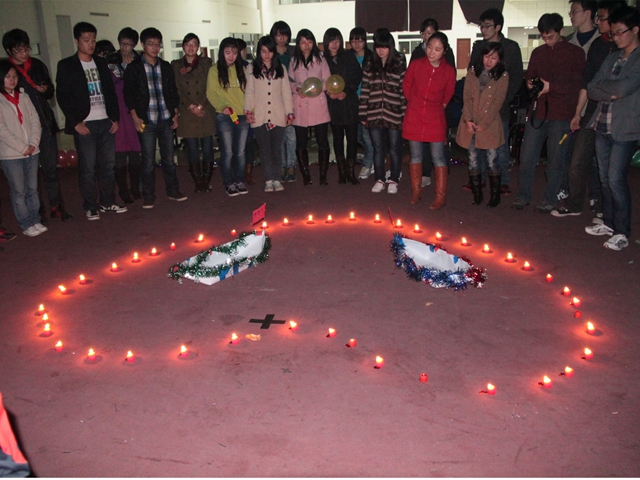 最后,同学们在许愿池旁许下自己对未来的期许和梦想,在闪烁的烛光中掩映着每一个人真挚而幸福的脸庞。来自校电视台的两名同学在此见证了自己的爱情,并获得了终极大奖,获得了所有人的祝福。