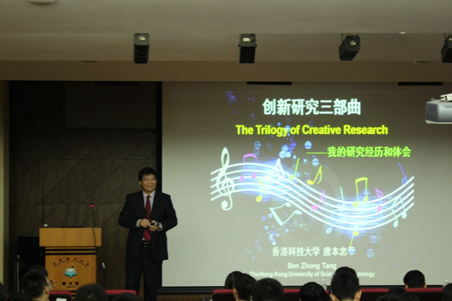 最后,唐院士用十年磨一剑来概括自己的科研经历,勉励大家要能醉心于科研,找到自己感兴趣的方向,只有有兴趣,才能静下心来搞科研。随后,唐本忠院士回答了现场同学的热烈提问,赞扬了同学们的科研思路和研究方法。会后,同学们都纷纷表示,本次报告为自己的科研工作提供了很多独到的视角和思路,受益匪浅,报告在大家热烈的掌声中结束。