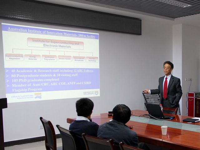 2014年10月13日,澳大利亚工程科学院院士,澳大利亚伍伦贡 (Wollongong)大学超导与电子材料研究所(ISEM)所长窦世学教授,刘化鹍教授来我校访问。窦世学院士为北理工师生带来题为“Development of Nano-materials for Energy Applications at ISEM”的精彩学术报告。报告会由必威西汉姆联张加涛教授主持,必威西汉姆联曹传宝教授、钟海政教授、化工与环境学院陈人杰教授等出席报告会。