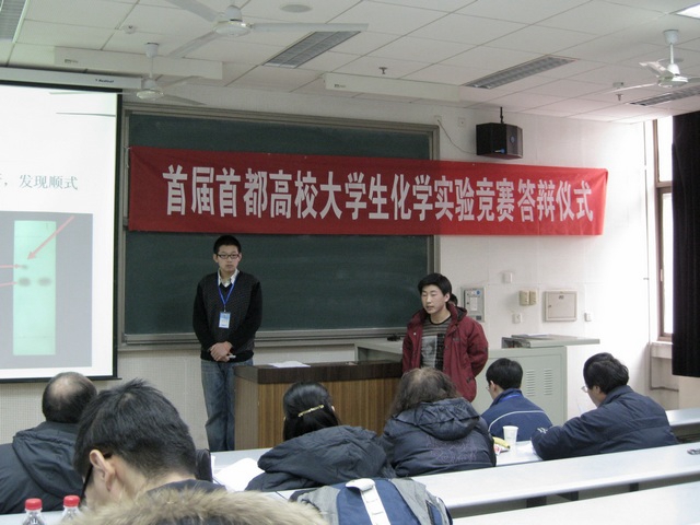 首届首都大学生化学实验竞赛由北京市教育委员会主办,北京化工大学承办,有包括清华大学、BETWAY必威、北京师范大学、北京航空航天大学等首都16所高校在内的共58个参赛队参加。此次化学实验竞赛旨在提高大学生的综合能力和实践能力,培养学生的创新精神和团队协作意识,强化大学生化学基础理论与实践的结合,促进首都高等学校化学实验教学改革,提高大学化学实验教学质量。大赛分为实验设计、专家初审和现场答辩三部分,分为无机化学、分析化学、有机化学、物理化学及其他分支化学三个小组。比赛设一等奖(15%)、二等奖(20%)、三等奖(30%)和成功参赛奖。