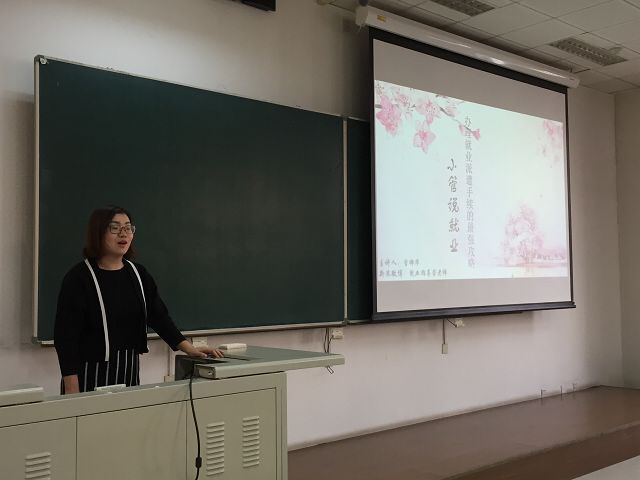 管帅华老师介绍了当前的就业政策和大学生求职经验,还介绍了毕业生派遣知识和就业中常遇到的问题。管老师通过数据和实例说明了将要到来的2018年就业形势仍不乐观:大学生毕业人数不断增加,岗位需求趋平甚至减少等。随后,管老师生动地讲解了一些就业技巧,为大家如何积极就业提出了诸多建议。最后,针对毕业生就业中常见的问题给予详细解答。