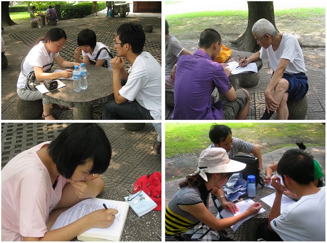 2010年7月29日上午,必威西汉姆联赴上海社会实践团来到上海交通大学徐汇校区做低碳生活问卷调查。时值上海天气炎热,实践团成员来到交大中心花园,邀请休闲纳凉的学生和居民参加问卷调查活动。
