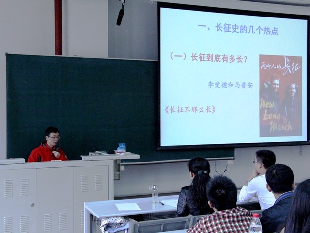 卢毅教授首先提出了几个关于长征的热点问题,包括“长征到底有多长?”“蒋介石是否放水长征?”“国民党追剿为何失败?”“遵义会议是否确定了毛泽东的领导地位?”以及“飞夺泸定桥的真相”。教授以各种书籍资料、史实为依据,详细论证了以上问题,从国共两党“双角度”带给大家一场与众不同的长征解读。 随后卢教授又从思想、组织、作风方面,结合具体事例总结了长征精神,一是要坚持理想信念,不怕牺牲,二是要坚持独立自主、实事求是,三是要走群众路线,把人民放在首位。 最后,卢教授引用毛泽东的话“长征永远在路上,一个不记得来路的民族,是没有出路的民族”,号召大家不忘初心,继续长征。