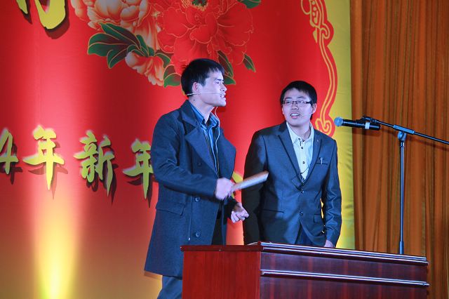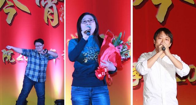 晚会上半场,张博文、刘玲、刘金旭等老师的歌曲联唱博得观众阵阵掌声。紧接着,马壮课题组的老师们献上原创小品《223订制》,结合时事热点和流行词汇,再现学生时代的生活点滴,引起了师生的共鸣。相声《学聋哑》惟妙惟肖的模仿,幽默诙谐的表演,令人忍俊不禁。最后,学院领导、老师以情歌对唱的方式一展歌喉,将晚会的气氛推向高潮。