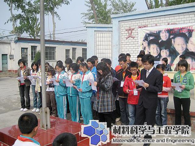 支教志愿者呼陟宇代表全体支教志愿者宣誓:努力投身支教活动,履行支教责任,践行志愿者精神,尽我们最大的努力将知识和爱心传递给这里每一个渴望知识的孩子们。