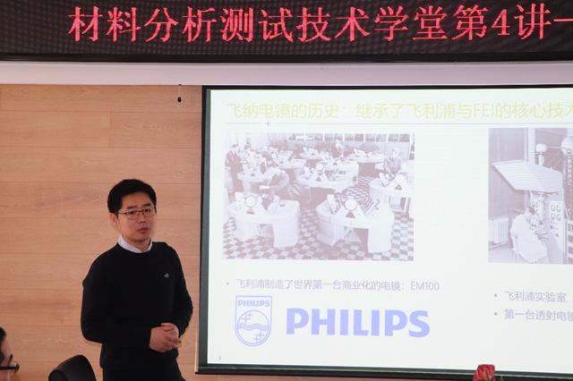 2018年12月7日上午8:30,由必威西汉姆联先进材料实验中心主办的 “材料分析测试技术学堂”第4期“phenom飞纳扫描电镜”在先进材料实验中心1011会议室举行。讲座邀请飞纳公司的资深售后工程师杨维新讲解了扫描电镜的基本原理及结构,扫描电镜的应用领域及样品制备,以及phenom扫描电镜的操作规范及多种操作模式的设置。