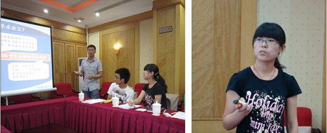 硕士一年级的吴腾腾同学与大家交流了阅读科技文献方面的心得,她事先通过调查问卷的方式了解到学院研究生阅读文献方面经常遇到的问题,报告中针对这些问题进行了分析,并提出了解决的方法,同时给大家汇报了一些阅读文献方面实用的技巧。硕士二年级的白曦同学与大家分享了“如何撰写学术论文”方面的经验,针对“撰写论文的前期工作”、“论文语言注意事项”、“论文各部分撰写”和“论文修改”几个方面进行了全面的阐述。