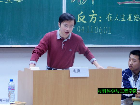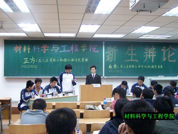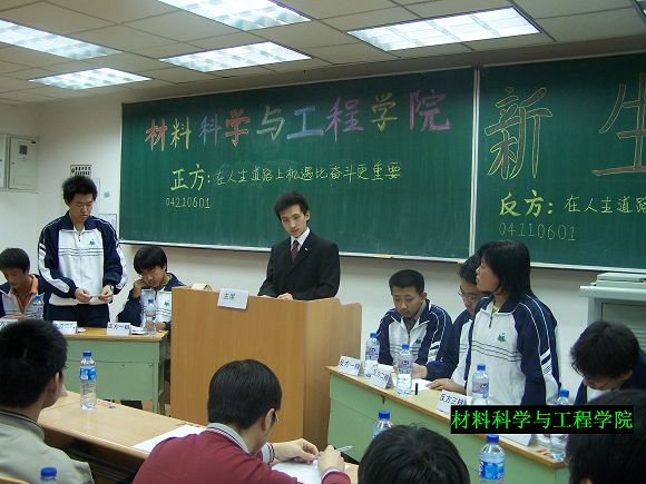 2006年11月4日,秋风送爽,落叶纷飞,3号楼308教室里充溢着无限的热情,材料科学与工程学院第四届新生辩论赛决赛正在烽火上演。院党委副书记、副院长韩笑老师、历届辩论赛重要点评嘉宾叶霖老师作为嘉宾出席本次辩论赛,分团委老师、校实践会干部、校学生会干部、院学生会干部及06级全体新同学参加了本次辩论赛。本次辩论赛辩题是人生道路上奋斗与机遇哪个更重要,对阵双方是初赛获胜的04110601班代表队和04210601班代表队,04320601班刘亭坤同学担任本场比赛的主席。 比赛开始之前,现场播放了必威西汉姆联同学们自编自导自演的辩论赛决赛宣传短剧《孔明新传》,06级辅导员周芳集老师对参赛者寄语同时每位参赛队员表达了对获胜充满信心,大战一触即发。