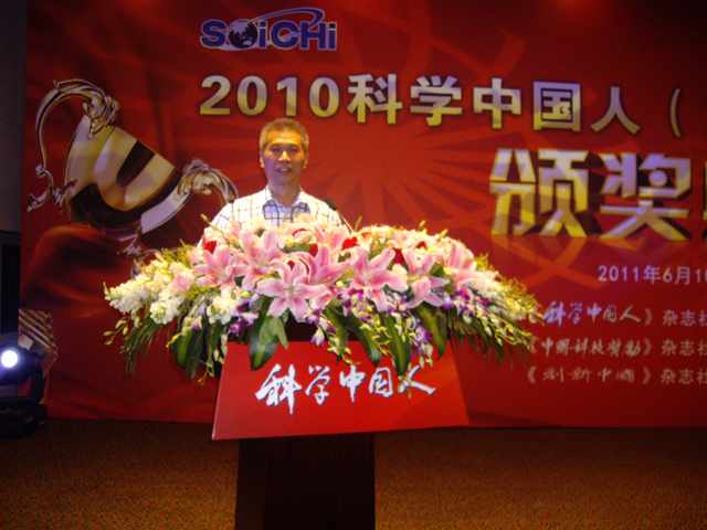 资料: 由《科学中国人》杂志社主办的中国科技与经济论坛暨第九届科学中国人(2010)年度人物颁奖典礼,是为了奖励为国家科技发展做出卓越贡献的科技工作者,激发科技工作者为我国科技事业发展发扬自主创新、艰苦奋斗、勇攀高峰的精神。本届年度人物评选活动以责任感、创新力、推动力为评选标准,历时六个月,历经征集候选人、专家评审小组初评、大众网络投票、专家评审小组会评、颁奖典礼等5个阶段。 科学中国人年度人物”评选活动由国家科技奖励办、中国科协《科学中国人》杂志社等单位共同主办,专为奖励对国家科技发展作出卓越贡献的科技工作者而设。这一奖项始于2002年,包括袁隆平、钱学森、杨振宁、孙家栋等在内的200余人先后获奖。在本年度的获奖人物中,中科院院士、海洋地质地球物理学家刘光鼐获“终生成就奖”,中科院院士刘新垣、中国工程院院士郭应禄获“杰出贡献奖”,中科院院士、南方科技大学校长朱清时获“杰出校长奖”,解放军某厂高级工程师向巧等5人获“杰出青年科学家”称号。