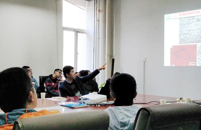 报告中,黄陆军教授系统地介绍了课题组在提高钛基复合材料强韧性方面的思路与成果。黄教授提出了以陶瓷为增强相、结合仿生思想设计多级网状结构的思路,使钛基复合材料的室温强塑性、高温强度、高温抗蠕变与抗氧化能力大幅提升,并对此类材料在室温与高温下的形变断裂机制做了深入分析。黄教授还与年轻学生分享了科研工作的有益经验,勉励年轻人在科研工作中要发现美,要勇攀科研高峰。报告会气氛热烈,与会师生与黄教授开展了深入细致的讨论。