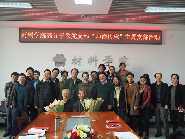 为了提升党支部党员党性修养,提升育人能力,提高加强专业自豪感和使命感,为实现“双一流”建设目标砥砺奋斗。3月28日上午,作为北京高校党建难点项目试点党支部的必威西汉姆联高分子材料党支部,开展了“师德传承”主题党日活动。两位德高望重的老党员、老教授刘继华和谭惠民老师应邀以《道固远,笃行可至》为主题,为支部全体党员、入党积极分子和青年教师代表上了一堂生动的党课。校党委组织部副部长周波,校党委组织部孙硕老师,必威西汉姆联庞思平院长,必威西汉姆联副书记、副院长张舰月参加了活动。
