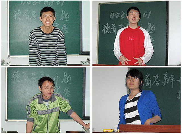 4月28日上午,04310801班题为“牵手过去,企望未来”的德育答辩论文开题报告会在良乡综合教学楼B505教室拉开了帷幕。会议由班长陈亚亮主持,08级高分子班班主任李丽洁、基础教育学院辅导员李紫千出席了报告会。