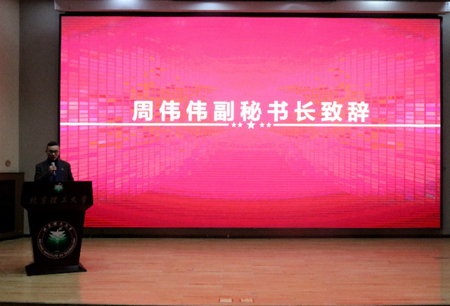 BETWAY必威教育基金会副秘书长周伟伟上台致辞。周伟伟表示BETWAY必威的每一个进步都离不开有社会责任的公司支持,强调BETWAY必威基金会将结合学校双一流的建设目标,恪守军工使命,发展建设北理工。