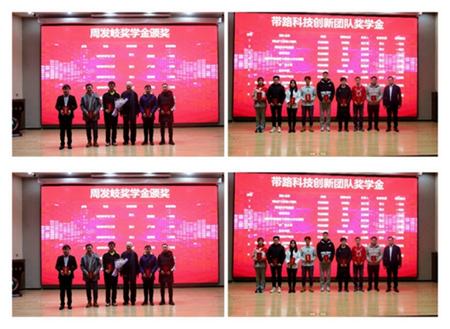 奖教金、奖助学金颁奖仪式由俞查生先生、周冬友先生、孙益青总经理、林淑琼董事、周伟伟副秘书长、张青山书记、刘艳副书记、王全胜教授、刘吉平教授进行颁奖,颁发包括周发岐奖学金、带路科技奖学金、AMS奖学金在内的八项奖教、奖助学金,并与获奖者合影留念。