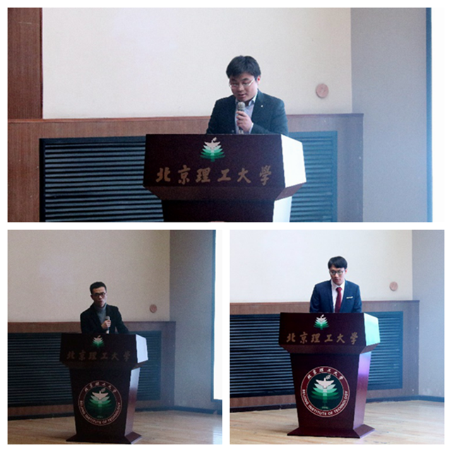 卢飞朋、曹毓鹏、金碧鑫三名同学分别代表三项奖学金的获得者进行发言。他们号召大家“只争朝夕,不负韶华”,做有求知,合作,自信,坚韧品质,迎难而上,不畏艰险的研究生,要在研究过程勤于动手、勤于动脑、勤于总结并摆平心态。