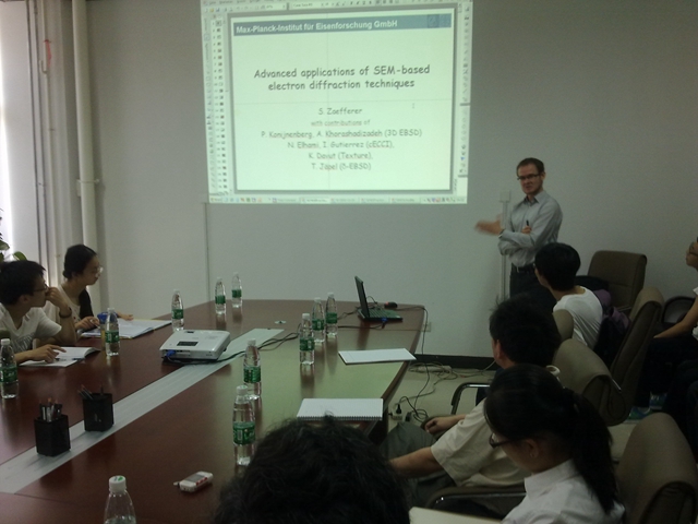 德国马普钢铁研究所S. Zaefferer博士应我院吴桂林老师的邀请,对我院进行了为期一天的学术访问。上午10:00,Zaefferer博士在必威西汉姆联会议室做了“21世纪学科前沿”系列学术讲座”的专题报告,全院师生约30人参加。在讲座上,Zaefferer博士介绍了扫描电子显微镜衍射技术的国际上最新研究进展和发展方向,并展示了扫描电子显微镜衍射技术在材料科学研究尤其是在金属材料的形变和再结晶领域的应用。整个报告期间,气氛十分活跃。在讲座上,Zaefferer博士的精彩生动的演讲,赢得了入会师生的阵阵掌声。讲座结束后,广大师生积极讨论、踊跃提问。入会师生普遍反应,通过Zaefferer博士的这次讲座,对扫描电子显微镜衍射技术以及在材料科学研究中的应用有了全新理解和深刻的认识。论坛的举行不但开阔了大家的视野、增加了国际交流,而且使大家掌握了学术发展的前沿,学术论坛取得了良好的结果。下午,Zaefferer博士分别与必威西汉姆联的部分师生进行了深入的讨论,并对今后进一步的合作和交流达成了共识。