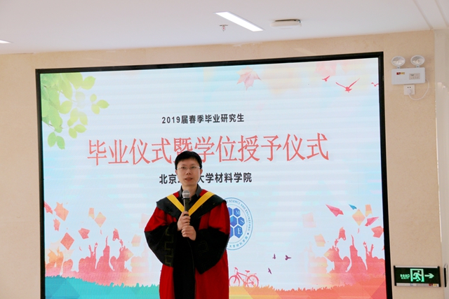 之后,刘艳老师宣读必威西汉姆联2019届春季毕业研究生毕业决定,并向即将毕业的同学们表示衷心的祝贺。吴川老师寄语毕业生,向毕业生们表达了最热烈的祝贺,希望同学们珍惜青春韶华,在最好的年纪里释放出属于青春的激情,立志高远,实现自己的理想,成就自己的精彩人生,为祖国的伟大事业献身。勉励同学们在将来勇于挑战,敢为人先,时刻保持自己的竞争力和应变力,展现出属于材子材女的风采。