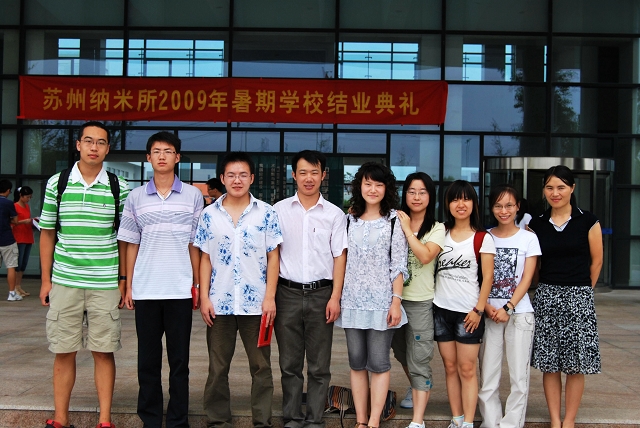 2009年8月12日,中科院苏州纳米所2009年暑期学校结业式在教育楼会议室里热烈举行。刘所长在结业式上致词,并给每位考核通过的同学颁发了结业证。我暑期学校参训学生与研究所老师们在教育楼正门合影留念,为期16天的暑期学术实践活动画上圆满的句号。