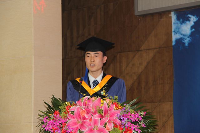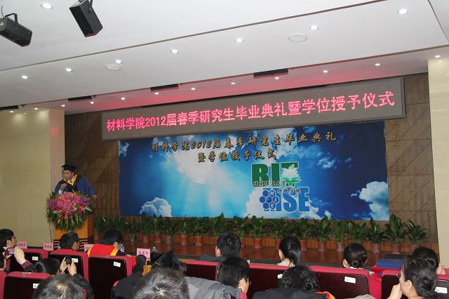 硕士毕业生吴培代表毕业生发言,满载着毕业生对父母养育之恩的感激,对母校和老师谆谆教导的感谢,对同窗好友的感谢,“德以明理,学以精工”已经深深地烙在了每位毕业生的心上。他们有能力也有信心活出自己的精彩,他们因是北理人而骄傲,因是材料人而自豪。今日,“材子材女”以母校为荣,他日母校以他们为荣。