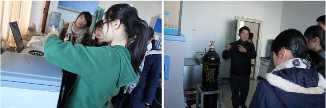 随后,同学跟随老师参观了各实验室。这里的实验室与新同学印象中的实验室大有不同,见到了很多以前只能在书本上见到的仪器,设备。在老师们讲解下,我10级新生们与学术前沿做了第一回零距离接触。