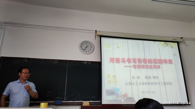 北京化工大学材料科学与工程学院教授徐斌为全体党员进行了一堂微党课—“用奋斗书写青春的靓丽华章”。徐斌老师为广大党员讲到:“新时代中国青年要树立远大理想,新时代中国青年要热爱伟大祖国,新时代中国青年要担当时代责任,新时代中国青年要勇于砥砺奋斗,新时代中国青年要练就过硬本领,新时代中国青年要锤炼品德修为!新时代是实现梦想的时代,每个人都有自己的梦想。