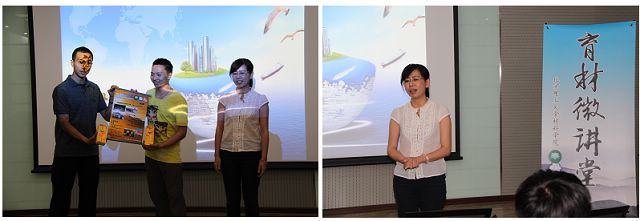 刘艳老师代表学院向“冷海”和“小武警”同志赠送了学生自己设计的“育材微讲堂”纪念海报和学校特色纪念小礼物。刘艳老师结合自己的感悟告诉大家,人生的价值不仅仅在于财富的积累,更在于生命力量的体现,希望同学们向救援队的这些年轻人学习,向需要帮助的人伸出援助之手,要提升灵魂的高度,在知识和精神层面都达到高学历。 讲座在愉快的氛围中圆满结束,收到了良好的效果。“信仰”、“青春”、“阳光”三个主题在讲座中得到充分体现:救援队的成员都是在工作之余志愿参加救援活动,他们出钱出力、不顾个人安危、心怀国家、心系人民,这种大爱的精神可以引导同学们“坚定崇高信仰”;他们是同学们的同龄人,他们的精神值得大家学习,他们的事迹能够激励广大同学,他们是值得敬佩的“青春榜样”;他们充满活力,洋溢着青春的气息,用“阳光”气息感染了广大同学。