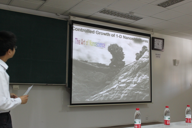 应邹炳锁教授的邀请,5月13日佐治亚大学的潘正伟教授访问了BETWAY必威,并受邀做“Controlled Growth of One-Dimensional Nanostructures— The Art of Nanoscience”的学术报告。该报告是“21世纪学科前沿”系列学术讲座之一。 首先潘正伟博士饶有兴趣地展示了科学与艺术的结合之美,潘教授使用电子显微镜研究纳米材料的同时捕捉了很多纳米尺度的艺术之美,并将这些艺术之美以画的形式展示出来,可称为纳米艺术家,这些作品曾在美国多家画廊展出,并得到C&EN's News等媒体的长篇报道。随后,潘博士介绍了他在ZnO纳米结构的开创性研究以及其对该领域进一步发展的体会和认识。最后介绍了他所领导的小组在碳纳米管复合纤维材料以及新型稀土掺杂发光材料等方面的最新研究进展。潘教授的报告长达75分钟,报告内容丰富多彩,让聆听报告的师生感受到科学与艺术之美。