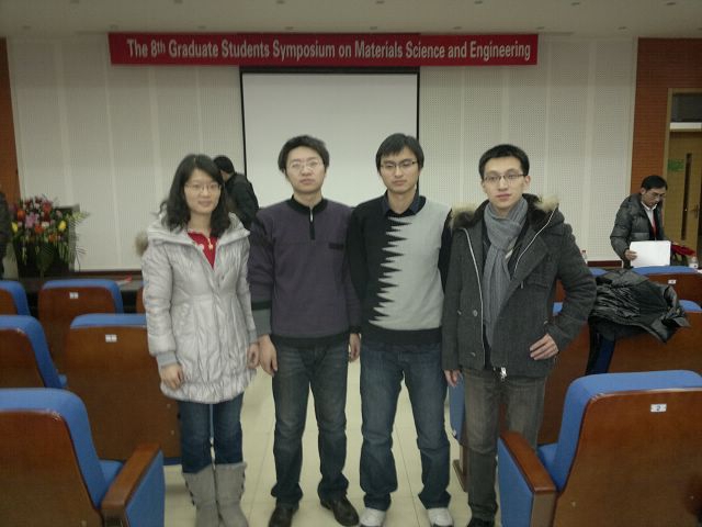 我院参加报告的四位研究生:赵双赞(左一)、王子龙(左二)、姚锐敏(右二)、