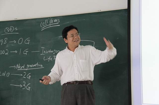 邹炳锁院长代表师生欢迎聂书明教授能来我校做学术交流。在热烈的掌声中,聂书明教授作了题为“Next-Generation Quantum Dots for Molecular and Cellular Imaging”的精彩报告。他生动的将量子点的制备和生物应用与通信领域的几代产品作了类比,介绍了量子点在生物应用中的发展历史、技术关键和将来可能产生的下一代更加实用产品,同时,介绍了这个过程中会出现的众多科学问题和关键技术,对这个领域的发展前景进行了展望。在报告结束后,聂书明教授与现场师生展开了热烈讨论。现场十余位师生提出了许多重要的相关科学疑问,聂书明教授一一作了解答。最后报告会在师生们的热烈掌声中结束