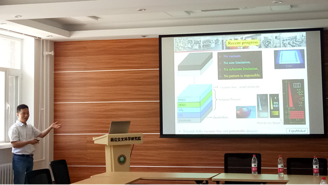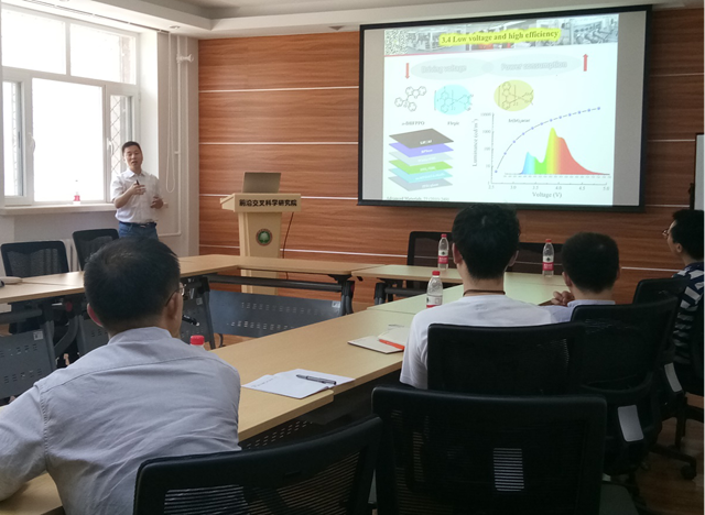 应BETWAY必威材料物理化学系和纳米光子学与超精密光电系统北京市重点实验室邀请,武汉大学化学与分子科学学院谢国华副研究员来我校必威西汉姆联进行学术访问,于2019年5月23日上午10点,在求是楼426进行了题为:“有机电致发光材料和器件的交叉学科研究”的学术报告,本次报告主要介绍了有机电致发光器件(OLED)涉及的有源驱动背板的集成和应用、低驱动电压器件的设计和优化、新发光机制材料和光物理性质探索以及溶液法器件加工技术等方面内容,我院钟海政教授,陈宇老师等共同参与了报告和讨论。