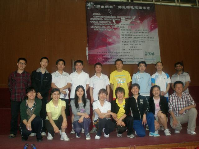 在5月7日的羽毛球决赛中,李生华老师和萨扎德组成的男双队伍首先将一组来自宇航学院的强劲对手斩于马下,接着在最终决战中又将另一组宇航学院的种子队伍绝杀,荣获冠军。而在女双比赛中,李向梅老师和何兰岚配合默契,让对手无懈可击,连续击败来自信息学院和机车学院的两支强队,登顶女双之巅。