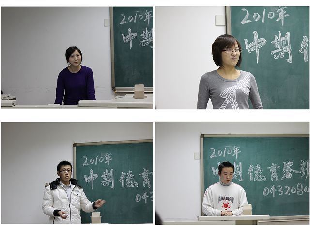 2010年11月19日,必威西汉姆联04320801班的同学在辅导员常云鹏和班主任薛云飞老师的指导下,于下午6时在研究生楼成功开展了中期德育答辩活动。