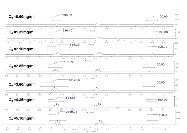 图四 利用定量核磁共振技术研究Azo-POP-1对水中苯胺的吸附性质